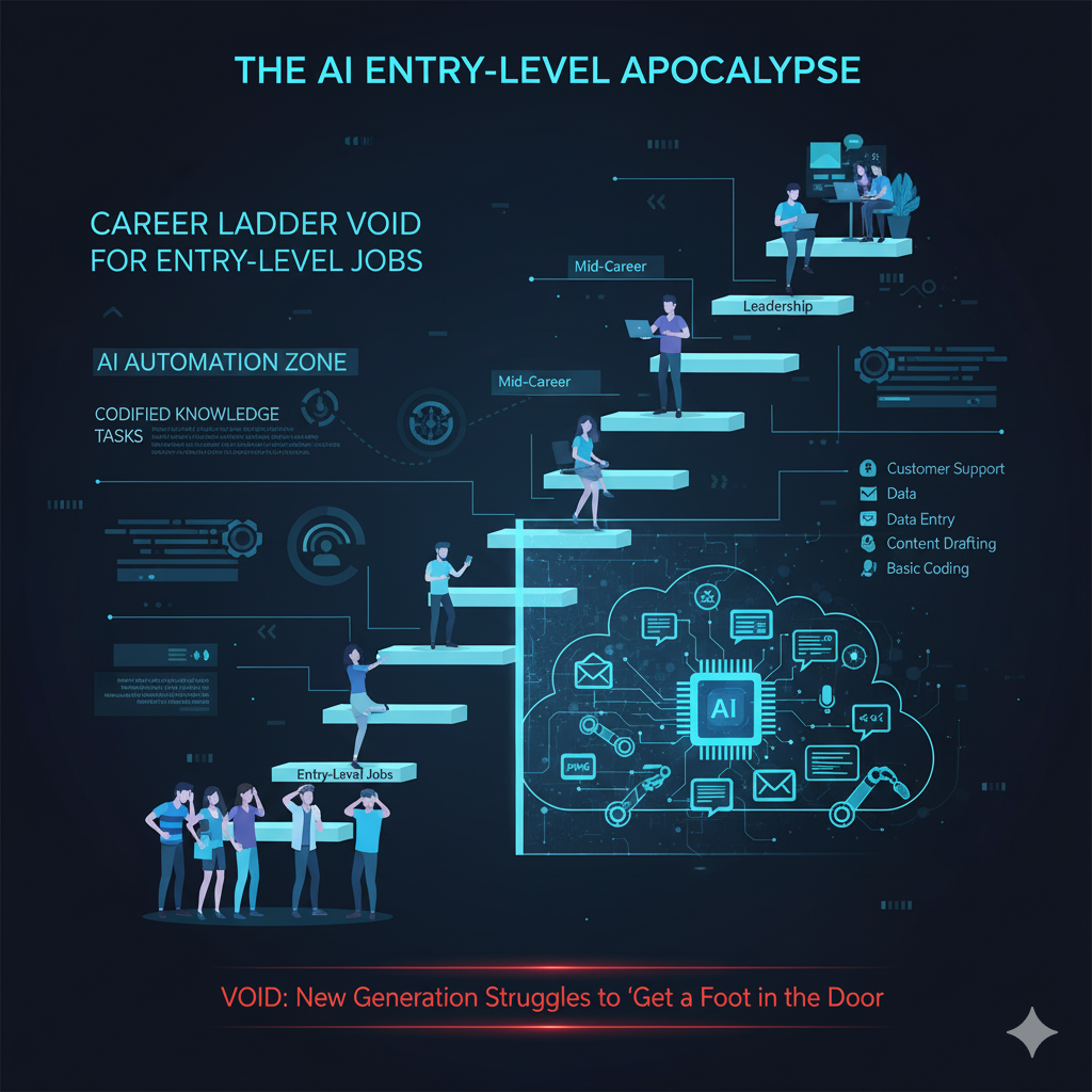 Cốt lõi của vấn đề nằm ở chỗ AI đặc biệt hiệu quả trong việc tự động hóa các tác vụ dựa trên kiến thức đã được hệ thống hóa—chính là nền tảng của hầu hết các công việc sơ cấp. Các công việc như trả lời email, xử lý ticket hỗ trợ khách hàng, phân tích dữ liệu cơ bản, soạn thảo nội dung ban đầu, hay thậm chí viết và gỡ lỗi các đoạn code đơn giản, đang dần được chuyển giao cho các thuật toán. Điều này tạo ra một ‘khoảng trống’ ở bậc thang dưới cùng của sự nghiệp, khiến việc ‘đặt chân vào cửa’ trở nên khó khăn hơn bao giờ hết đối với thế hệ lao động mới.
