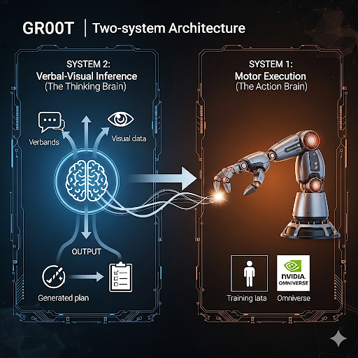 Lấy cảm hứng từ hệ thống nhận thức của con người, GR00T sử dụng kiến trúc hai hệ thống: