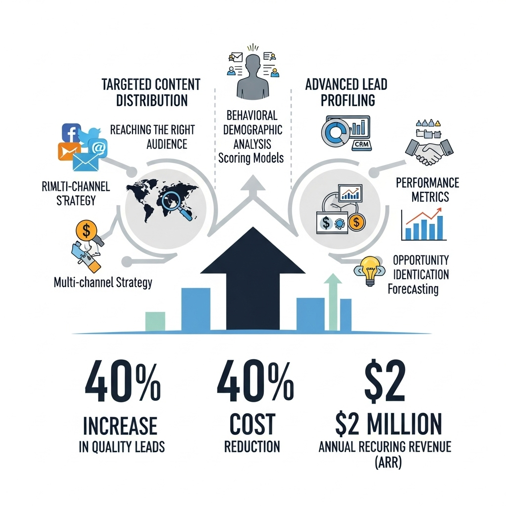 Để giải quyết thách thức này, ACI đã hợp tác với Demand Media và triển khai một cách tiếp cận đa tầng, tập trung vào chất lượng thay vì số lượng. Trọng tâm của chiến lược là sự kết hợp của ba yếu tố: (1) Phân phối nội dung có chủ đích qua BrandConnect™ để đưa các tài sản chuyên môn (như whitepaper, báo cáo) đến đúng các bên liên quan; (2) Xây dựng hồ sơ lead nâng cao bằng HQLiQ™, một công cụ nội dung tương tác giúp thu thập dữ liệu sâu hơn về ý định của khách hàng; và (3) Trao quyền cho đội ngũ bán hàng bằng cách cung cấp cho họ những insight quý giá về lead. Kết quả vượt xa mong đợi: tăng 40% SQL chất lượng, giảm 40% chi phí mỗi lead (CPL), tăng trưởng doanh thu 24%, và quan trọng nhất là tạo ra 2 triệu USD doanh thu định kỳ hàng năm (ARR) trực tiếp từ chiến dịch.