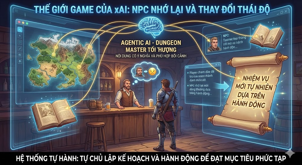Dự án game của xAI là một ví dụ điển hình của Agentic AI, một hệ thống tự hành này có khả năng tự chủ lập kế hoạch và hành động để đạt được mục tiêu phức tạp.