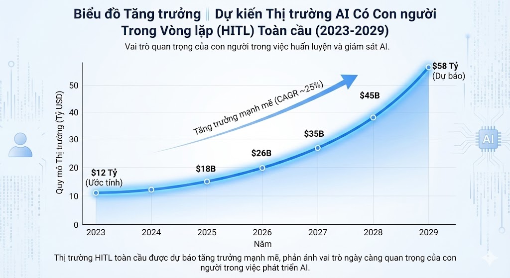 - Dữ Liệu Thị Trường: AI Suy Luận Có Con Người Giám Sát (HITL) Đang Tăng Trưởng Mạnh Mẽ