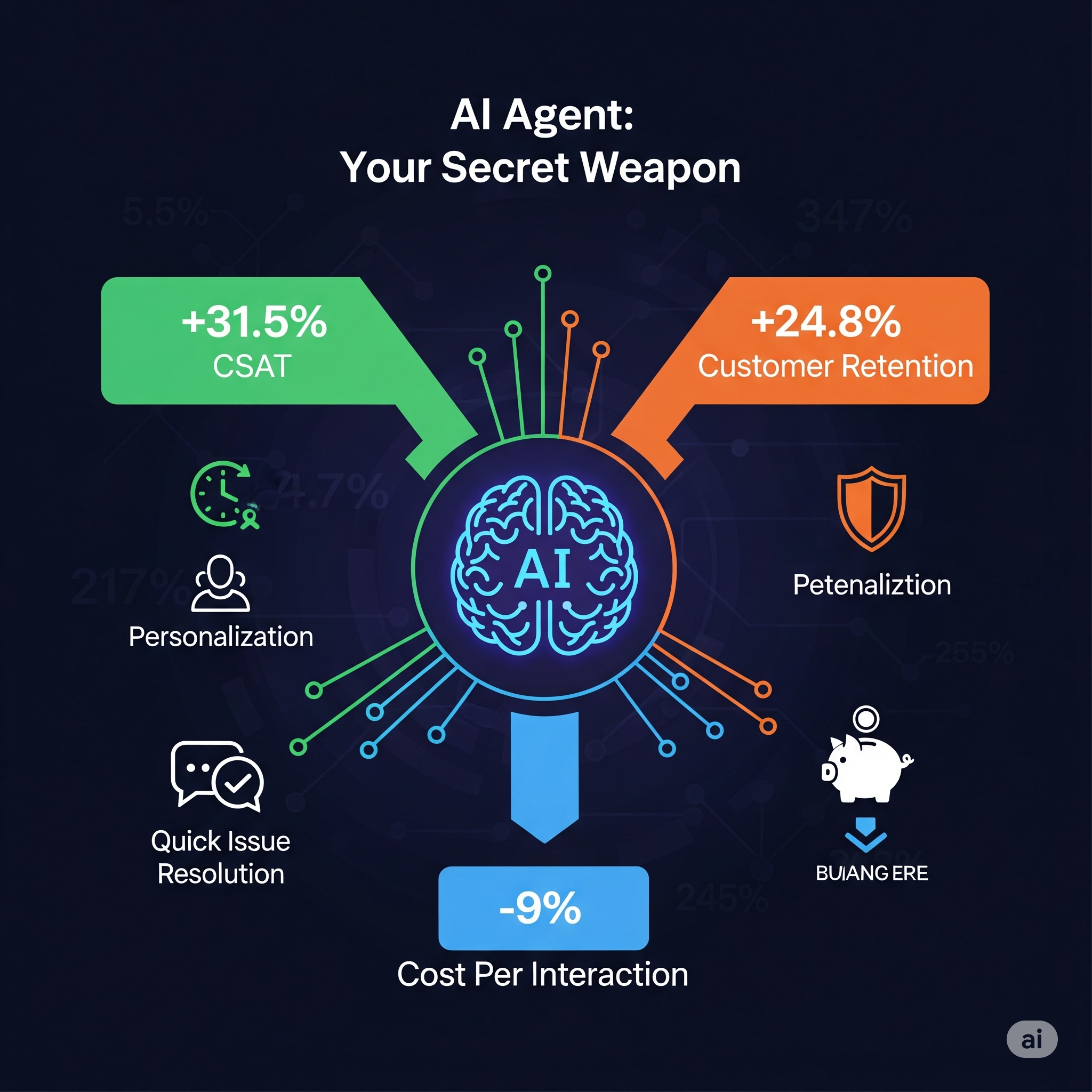 Trong thời đại cạnh tranh bằng trải nghiệm, AI Agent là vũ khí bí mật. Khả năng phản hồi 24/7, cá nhân hóa tương tác và giải quyết vấn đề nhanh chóng giúp tăng điểm hài lòng của khách hàng (CSAT) lên 31,5% và tỷ lệ giữ chân khách hàng thêm 24,8%. Hơn nữa, các công cụ AI đa kênh còn giúp giảm 9% chi phí trên mỗi lần tương tác, vừa nâng cao chất lượng dịch vụ vừa tối ưu hóa ngân sách.